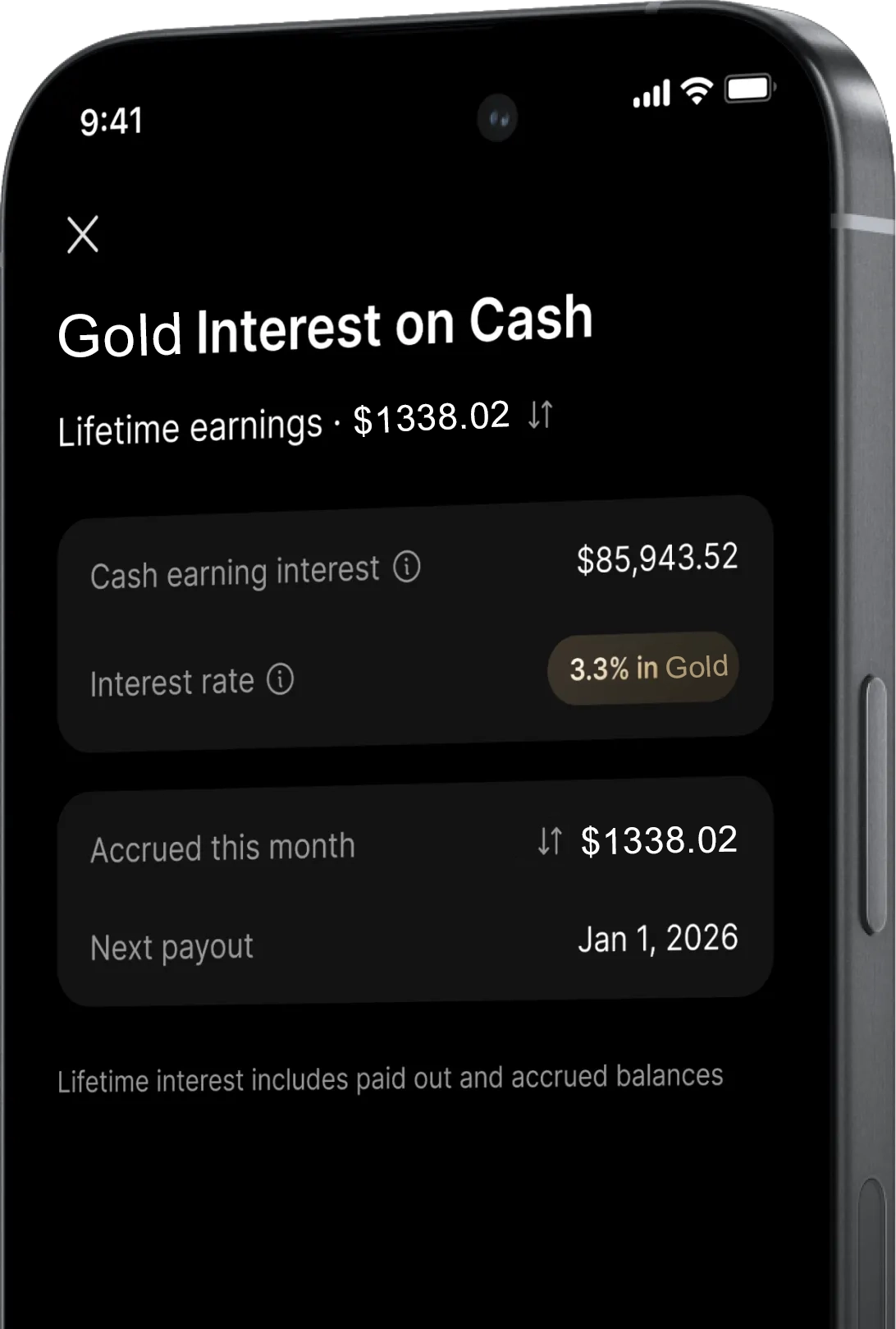 现金赚取 3.3% 利息。以外汇支付。